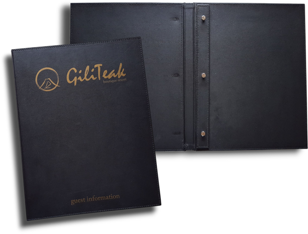 We are manufacture all of our custom menu covers and folders in-house in Bali for restaurants, cafes, villas, hotels, retail & hospitality businesses. If you are looking for something totally bespoke, we can develop menu covers with custom dimensions and designs.